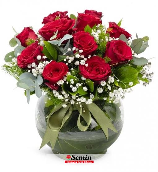 Akvaryum Vazoda butik olarak hazırlanmış 11 Kırmızı Güller bir hediyeden çok daha fazlası.
