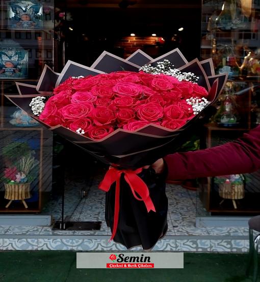Bu bukette 41 adet kırmızı gül bulunmaktadır.