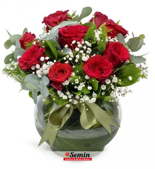 Akvaryum Vazoda butik olarak hazırlanmış 9 Kırmızı Güller bir hediyeden çok daha fazlası.